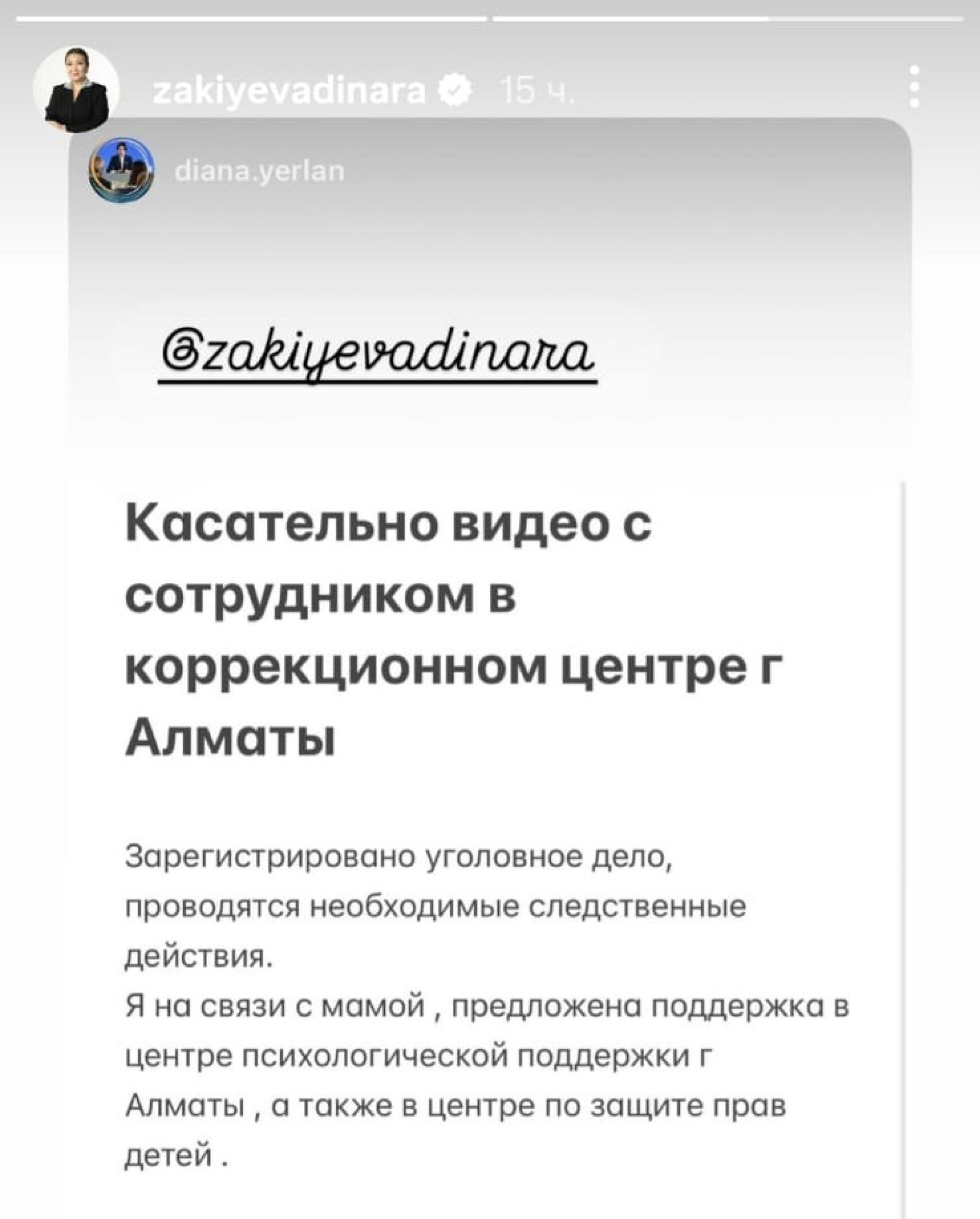 По факту появившихся видеороликов опубликовала сторис в Instagram детский омбудсмен Динара Закиева.