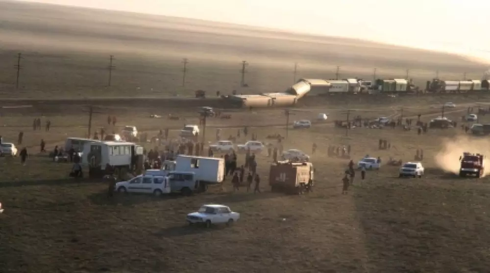 Сход 13 пассажирских вагонов поезда №42, следовавшего по маршруту "Алматы-Атырау", произошел 19 апреля на железнодорожном участке "Сагиз-Макат" Атырауской области. В момент ЧП в поезде сообщением Алматы - Атырау находились 580 пассажиров. Общее количество пострадавших составило 27 человек.