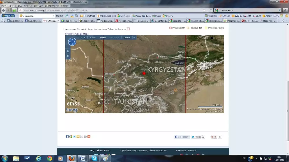 Землетрясение магнитудой 3,5 произошло в Кыргызстане Эпицентр землетрясения. Изображение с сайта emsc-csem.org