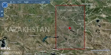 Землетрясение магнитудой 4,0 произошло в 150 километрах от Усть-Каменогорска Карта с указанием эпицентра землетрясения с сайта emsc-csem.org