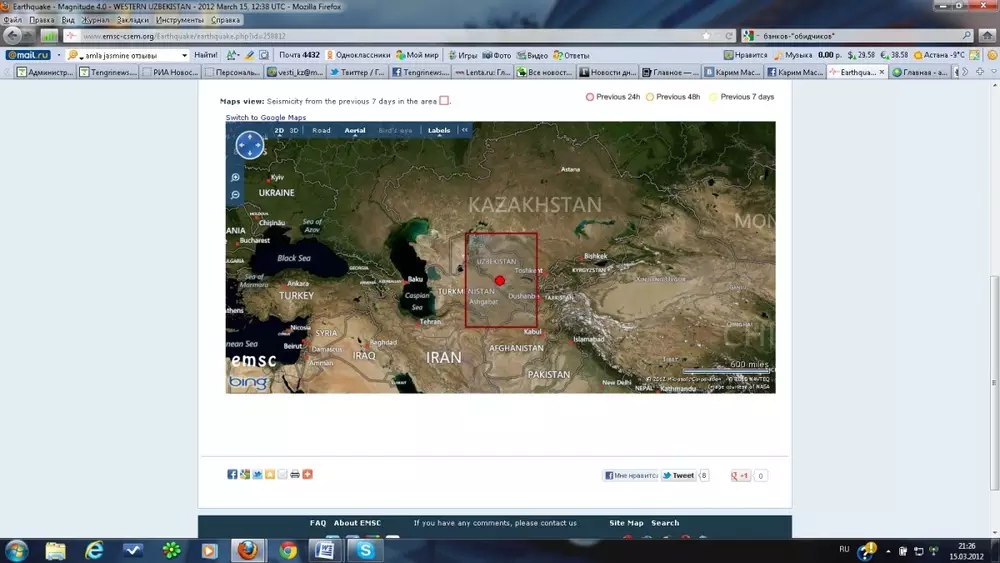 15 марта в 18.38 времени Астаны в Узбекистане произошло землетрясение магнитудой 4,0, передает корреспондент Tengrinews.kz со ссылкой на Европейско-Средиземноморский сейсмологический центр.