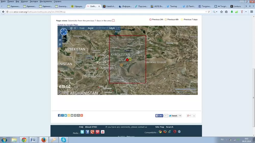 5 мая в 302 километрах от Алматы произошло землетрясение магнитудой 5,4.