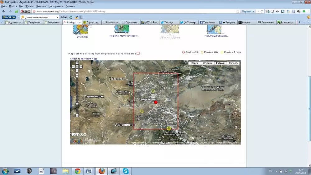 На территории Таджикистана 20 мая в 05.47 по времени Астаны произошло землетрясение магнитудой 4,1, передает корреспондент Tengrinews.kz со ссылкой на Европейско-Средиземноморский сейсмологический центр. Очаг подземных толчков зафиксирован на глубине 200 километров. Эпицентр землетрясения располагался в 363 километрах к востоку от столицы республики Душанбе, в 126 километрах к северо-востоку от Хорога и в 100 километрах к западу от Мургаба. Информации о жертвах и разрушениях нет. Подземные толчки могли ощущать жители южных районов Казахстана.