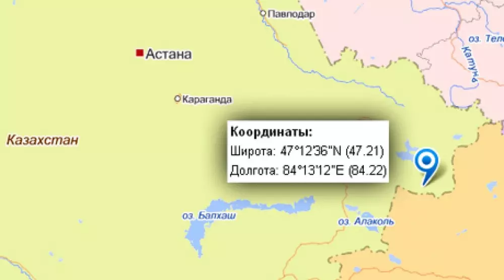 Эпицентр землетрясения находился в 727 километрах к северо-востоку от Алматы. Его энергетический класс составил 9,4, глубина - 0-5 километров.