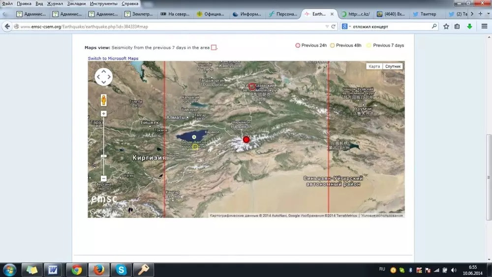Землетрясение магнитудой 4,5 произошло в 309 километрах от Алматы Карта с указанием эпицентра землетрясения с сайта emsc-csem.org