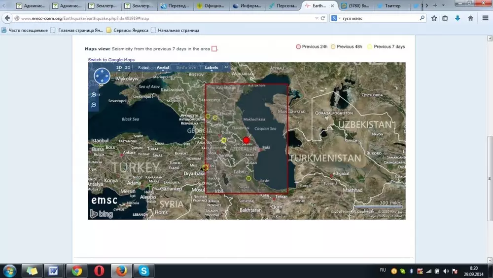 В 380 километрах к юго-западу от Актау 29 сентября в 07.38 по времени Астаны зафиксировано землетрясение магнитудой 5,3, передает корреспондент Tengrinews.kz со ссылкой на Европейско-Средиземноморский сейсмологический центр.