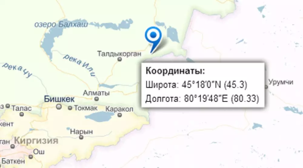Землетрясение произошло в Алматинской области ©maps.yandex.ru