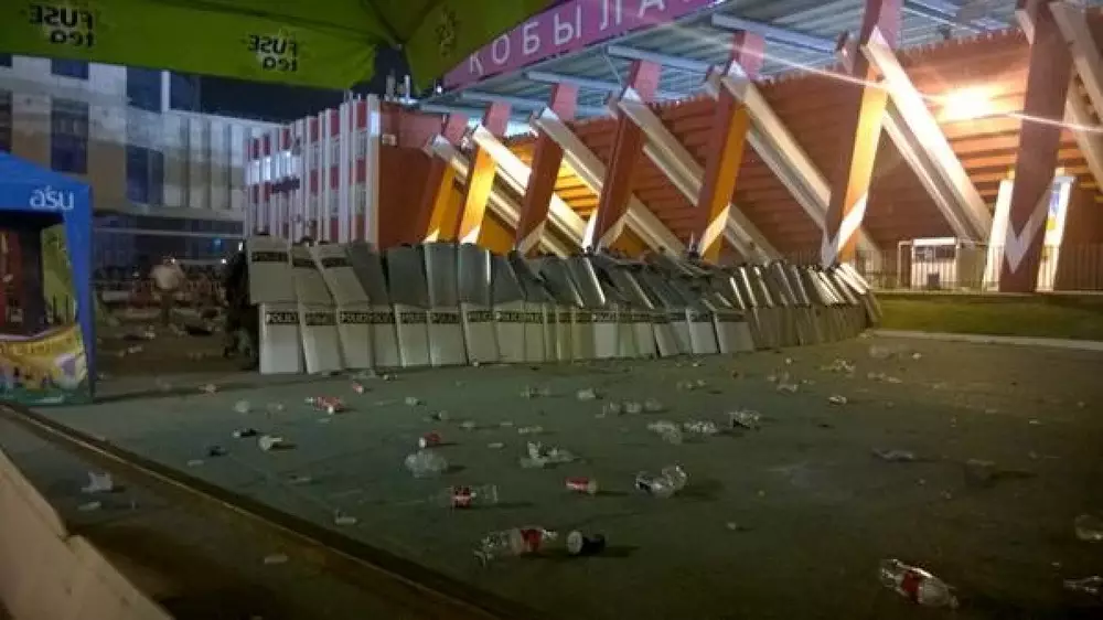 Как рассказали очевидцы, уже за пределами арены, расстроенные поражением своего клуба болельщики ФК "Актобе" попытались выместить злость на фанатах "Легии". Однако путь актюбинцам преградили полицейские и сотрудники внутренних войск. В итоге в стражей порядка полетели камни, а также столы и стулья летнего кафе, которое расположено рядом со стадионом.
