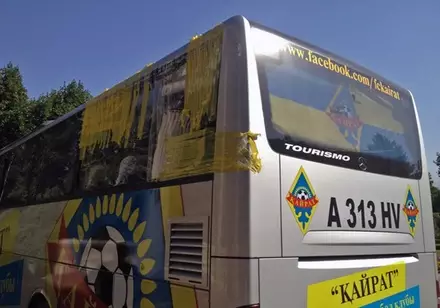 ФК "Тараз" оштрафован на полмиллиона тенге за нападение фанатов на автобус "Кайрата" Фото пресс-службы ФК "Кайрат"