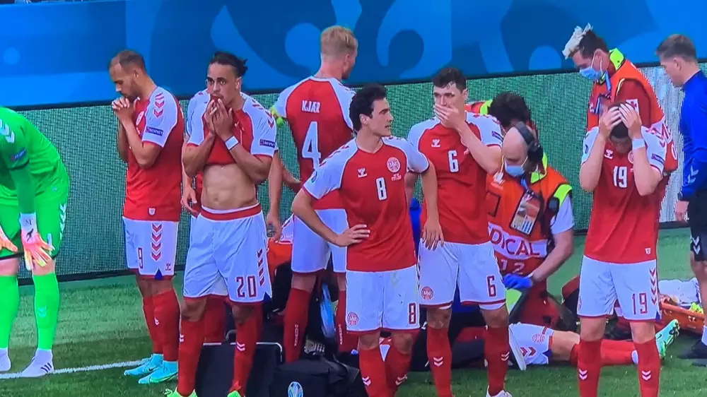 Встреча группы В началась в субботу в Копенгагене. В самом конце первого тайма Эриксен потерял сознание.