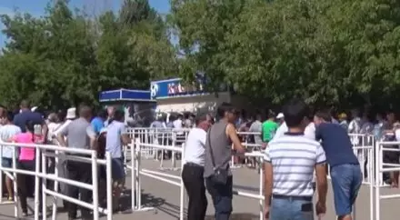 "С 5 утра стою, не выспалась, голова болит от жары, а очередь не двигается", - жалуется Бибинур.