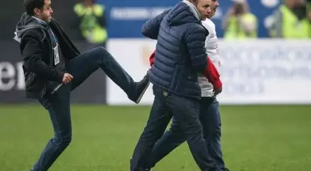 Комментатор пнул болельщика московского "Спартака" во время матча