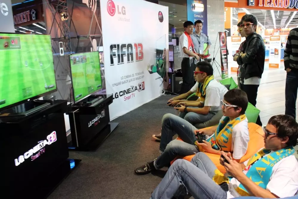Посетители смогли первыми протестировать игру FIFA 13 в 3D на игровых консолях PS3 на современных LED телевизорах LG Cinema 3D с диагональю 82-дюйма. Фанатам футбола также представилась возможность сыграть в футбол на реальной и виртуальной площадках c легендарной казахстанской национальной футбольной командой "Кайрат".