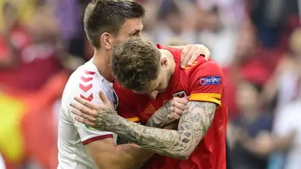 В матче 1/8 финала, прошедшем на стадионе "Йохан Круифф Арена" в Амстердаме (Нидерланды), подопечные Каспера Юльманна обыграли команду Уэльса со счетом 4:0. В составе датчан дубль оформил Каспер Дольберг (27-я и 48-я минуты), еще по разу отличились Йоаким Мехле (88-я) и Мартин Брейтуэйт (95+).