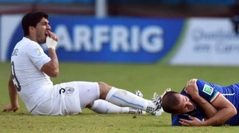 Напомним, Луис Суарес укусил за плечо Кьеллини в матче группового этапа 24 июня, который уругвайцы в итоге выиграли со счетом 1:0. За укус защитника сборной Италии апелляционный комитет Международной федерации футбола (ФИФА) наказал Луиса Суареса длительной дисквалификацией. Он не сможет играть в составе сборной Уругвая на протяжении девяти официальных матчей и будет отстранен от любой футбольной деятельности на четыре месяца. Сам Луис Суарес в своей объяснительной ФИФА заявил, что не собирался кусать защитника сборной Италии Джорджио Кьеллини и "случайно упал ему зубами на плечо"