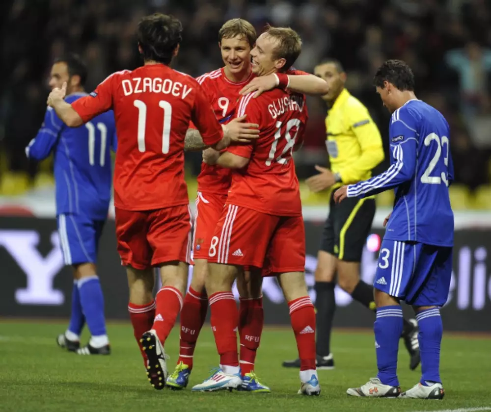 Матч на московском стадионе "Лужники" завершился со счетом 6:0. Авторами голов стали Сергей Игнашевич, Роман Павлюченко, Денис Глушаков, Динияр Билялетдинов, а также Алан Дзагоев - дубль.