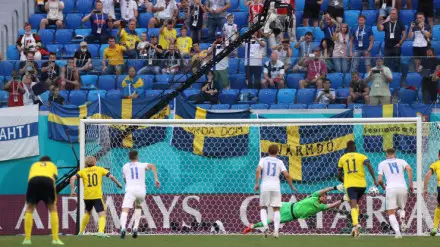 До 77-й минуты на табло горели нули. Затем же за фол вратаря "Ньюкасл Юнайтед" и сборной Словакии Мартина Дубравки немецкий арбитр Даниэль Зиберт назначил пенальти в пользу Швеции.