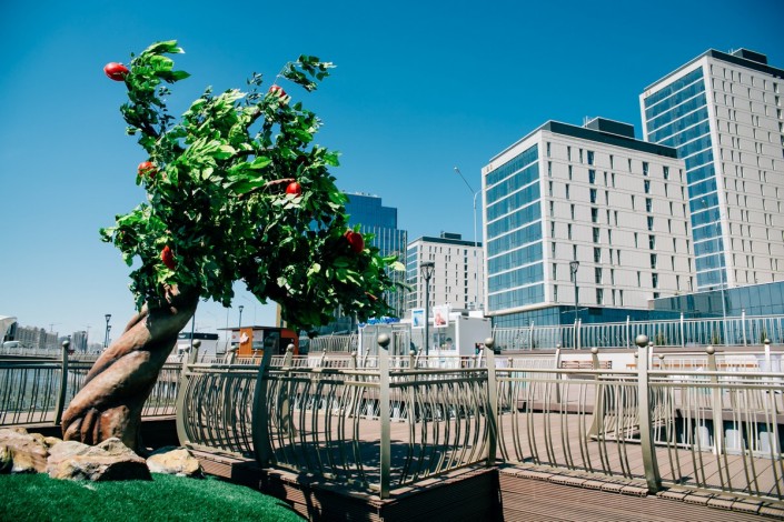 "Зеленый квартал" был представлен как флагман казахстанской экспозиции на ЭКСПО-2017. Посетители большое внимание уделяли "зеленой" составляющей проекта. Они были удивлены зарядными станциями для электромобилей, привлекло внимание и искусственное озеро, конечно же.