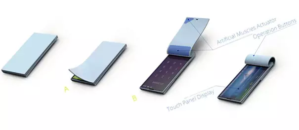 Во время просмотра фильма или работы в интернете эластичную панель можно завернуть за тыльную часть телефона. В этом положении проявляются сенсорные кнопки управления, которые расположены на внутренней стороне крышки. Дизайнеры позиционируют свое "детище" как коммуникатора будущего поколения.