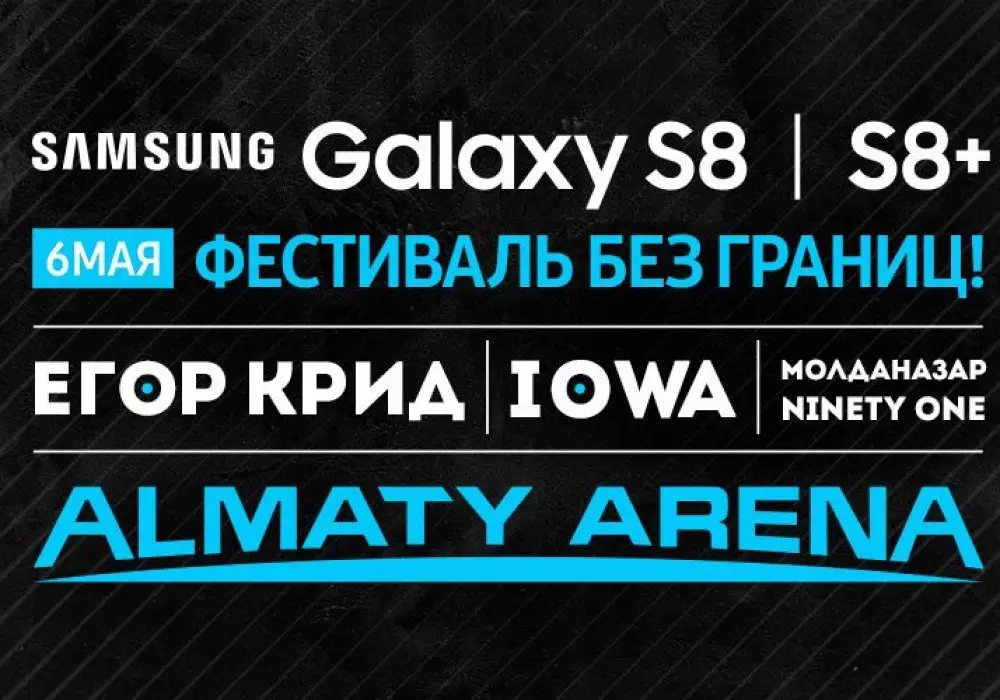 Долгожданные смартфоны от Samsung можно потестировать в эту субботу, 6 мая, в ледовом дворце "Алматы Арена". Здесь же состоится концерт популярных артистов - российского певца Егора Крида и белорусской группы IOWA, а также казахстанских музыкантов - команды Ninety One и Moldanazar.