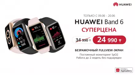В Казахстане стартуют продажи нового фитнес-браслета Huawei Band 6. Новый продукт является первым фитнес-браслетом компании Huawei с функцией круглосуточного мониторинга уровня насыщения крови кислородом SpO2, которая дополняет обширный набор инструментов мониторинга состояния здоровья: отслеживание пульса, качества сна, уровня стресса и других параметров. В честь запуска продаж Huawei с 9 по 20 июня предлагает суперцену - 24 990 тенге.