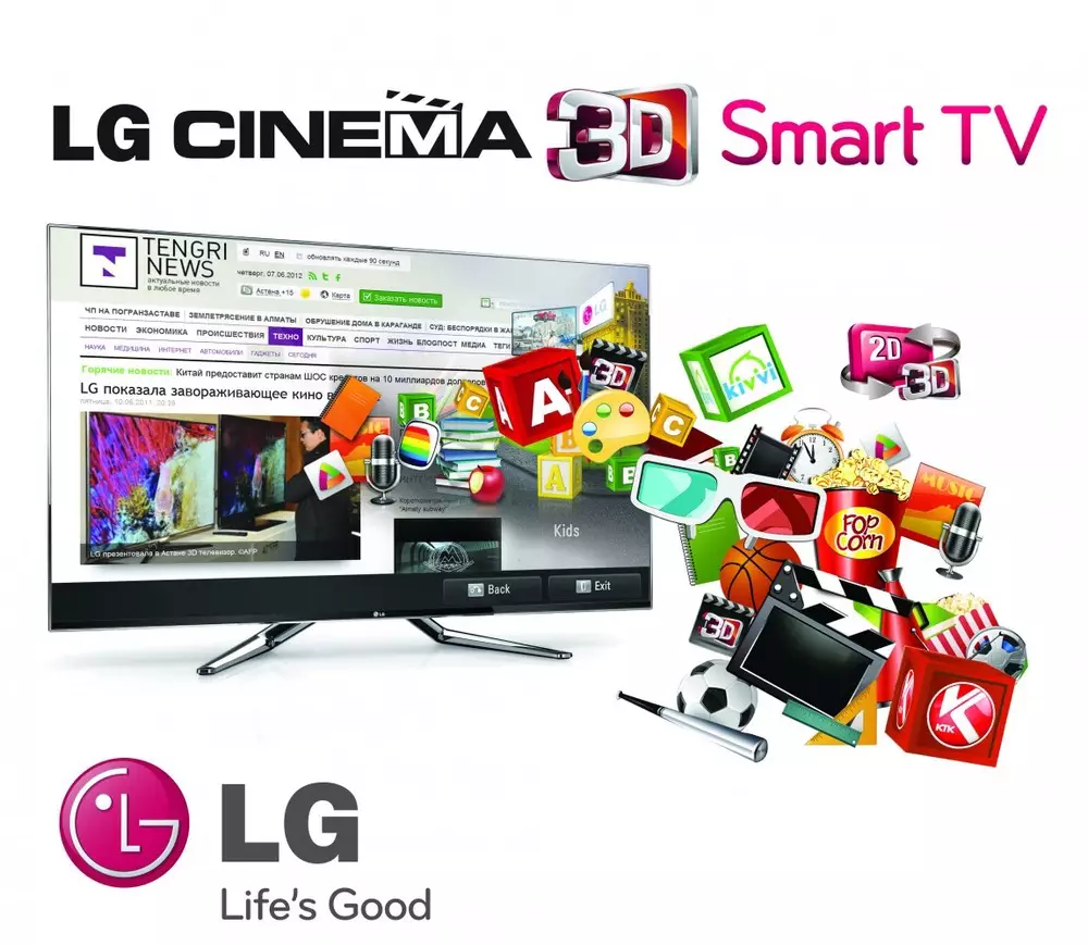 Казахстанский информационный портал Tengrinews.kz выпустил приложение для телевизоров LG. Благодаря специальной программе на LG Cinema 3D Smart TV зрители смогут быть в курсе самых последних казахстанских и мировых новостей экономики, культуры и социальной жизни. Помимо этого, на портале можно будет посмотреть видеоинтервью, а также следить за оперативно обновляемой информацией о предстоящей летней Олимпиаде в Лондоне. Магазин приложений LG Apps TV в Smart-телевизорах LG предлагает пользователям более 380 приложений в категориях игры, информационно-новостных, образовательных, развлекательных, разработанных специально для телевизоров LG. Помимо прочего, в телевизорах пользователь может проверять ленту новостей в Facebook, Twitter и других социальных сетей, не отрываясь от просмотра передач. Отметим, Tengrinews.kz - это третье по счету локальное приложение для телевизоров LG наряду с запущенными ранее приложениями КТК и KIWI.kz. Приложения открыли доступ к большому количеству аудио- и видеоматериалов казахстанского медиапортала.