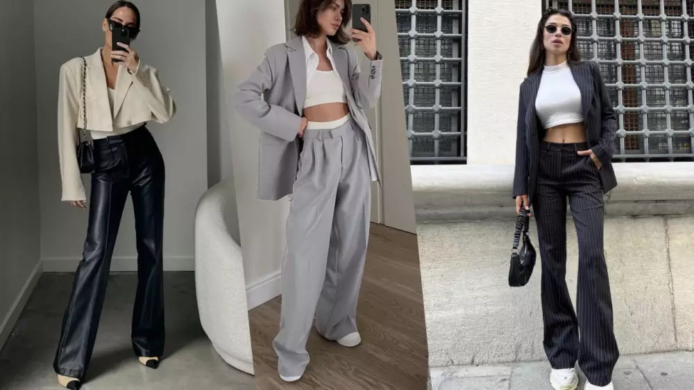 Широкие брюки актуальны уже не первый сезон, и сдавать свои позиции они не собираются. Важно учитывать два момента: брюки лучше носить с каблуками, но если в приоритете кроссовки или ботинки, то лучше сделать выбор в пользу обуви на платформе. Брюки должны целиком закрывать каблук или платформу.