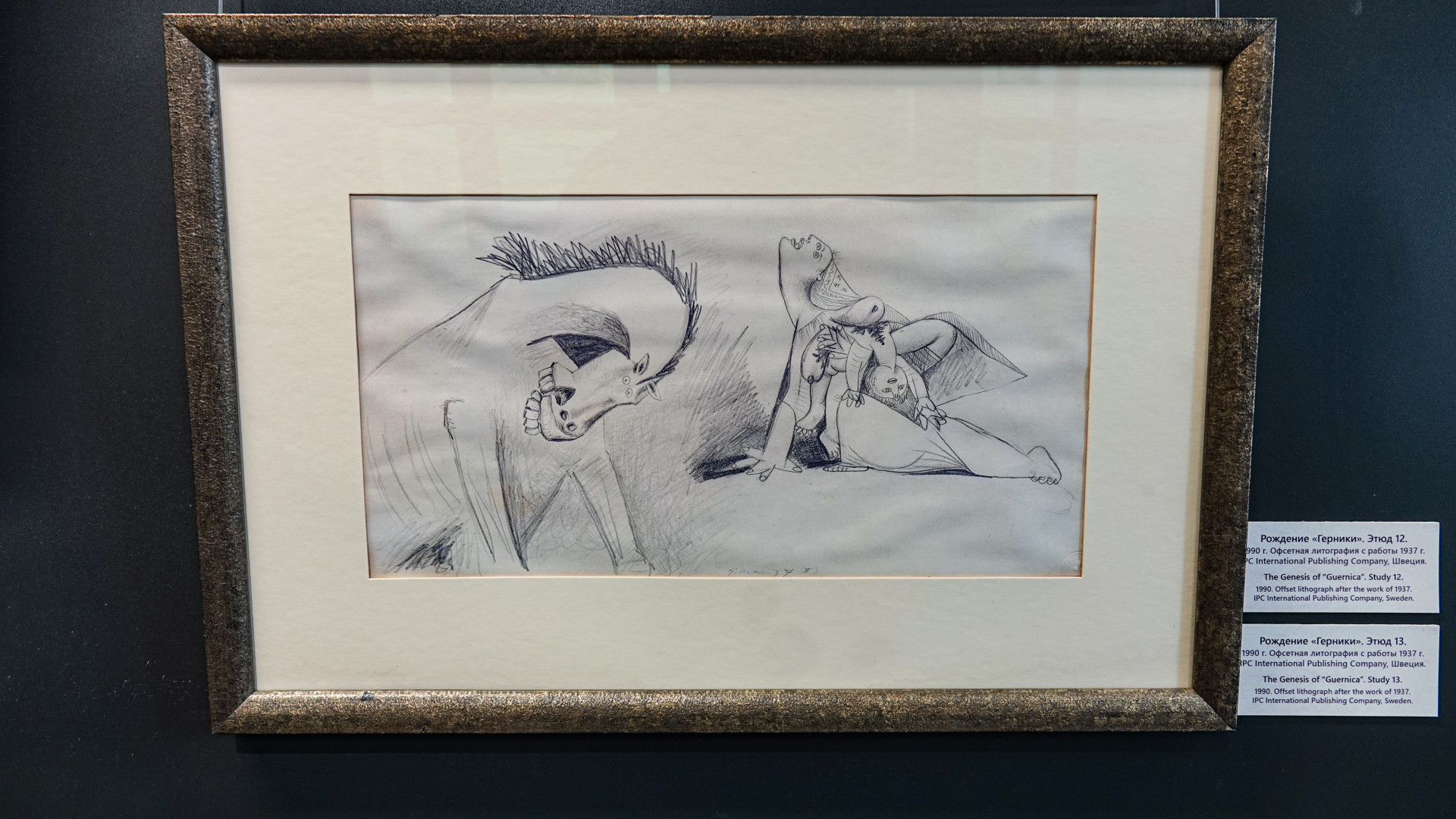 "В рамках выставки "Пабло Пикассо. Параграфы" большая часть экспозиции отведена эскизам к программному произведению под названием "Герника". Эта картина действительно может не всем понравиться. Когда зрители впервые её видят, они не всегда понимают, кто мог такое изобразить - ребёнок или человек с ментальными особенностями.Зачем вообще это нужно? Если рассказать идею работы, то ужас, который мы можем испытать от странной и непривычной стилистики Пикассо, уходит на второй план.