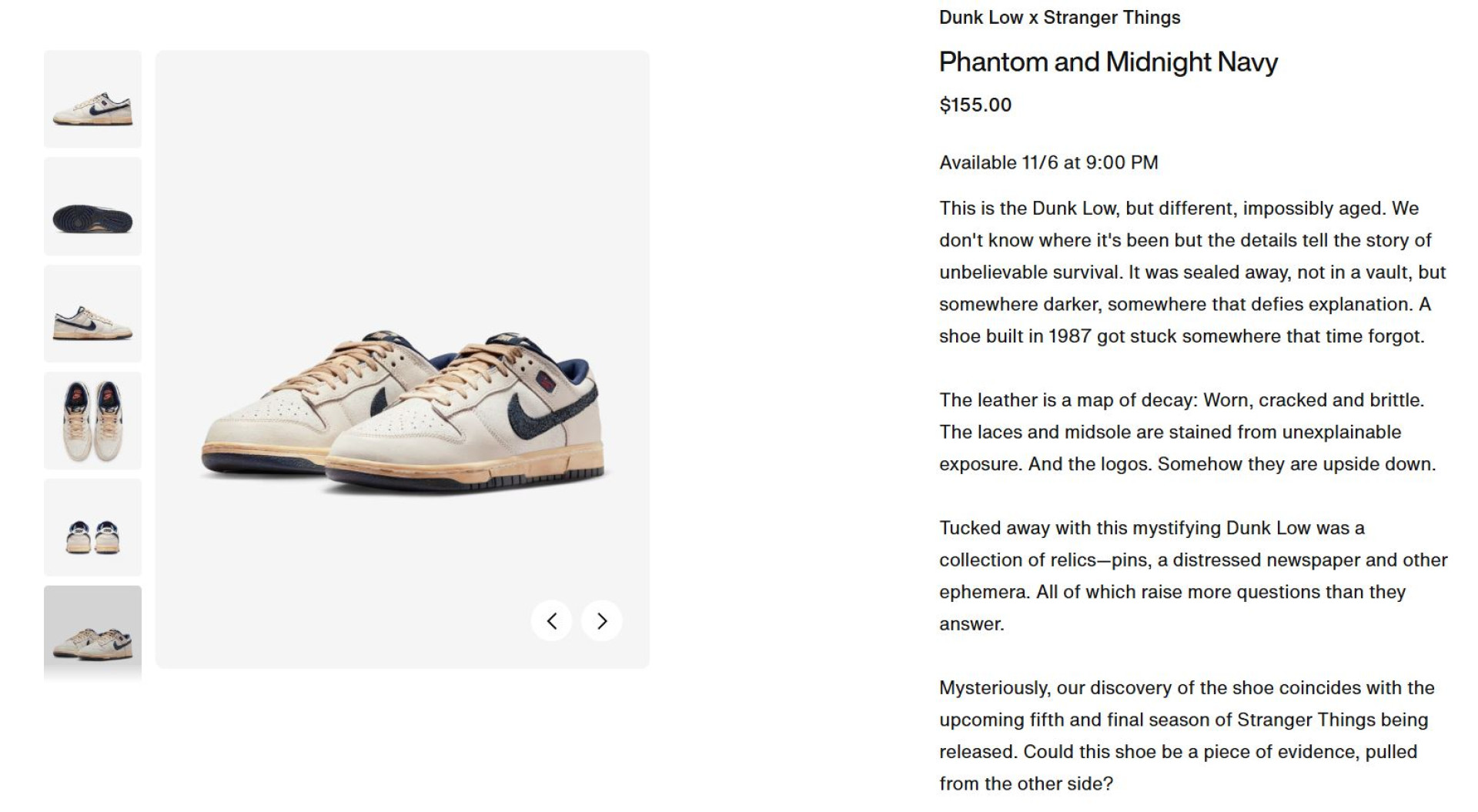 "Это — Dunk Low, но не тот, что вы знали. Он будто невозможным образом постарел. Мы не знаем, где он побывал, но каждая деталь рассказывает историю невероятного выживания. Его не хранили в сейфе — его спрятали где-то глубже, в месте, которое не поддаётся объяснению. Кроссовки, созданные в 1987 году, словно застряли там, где время остановилось.