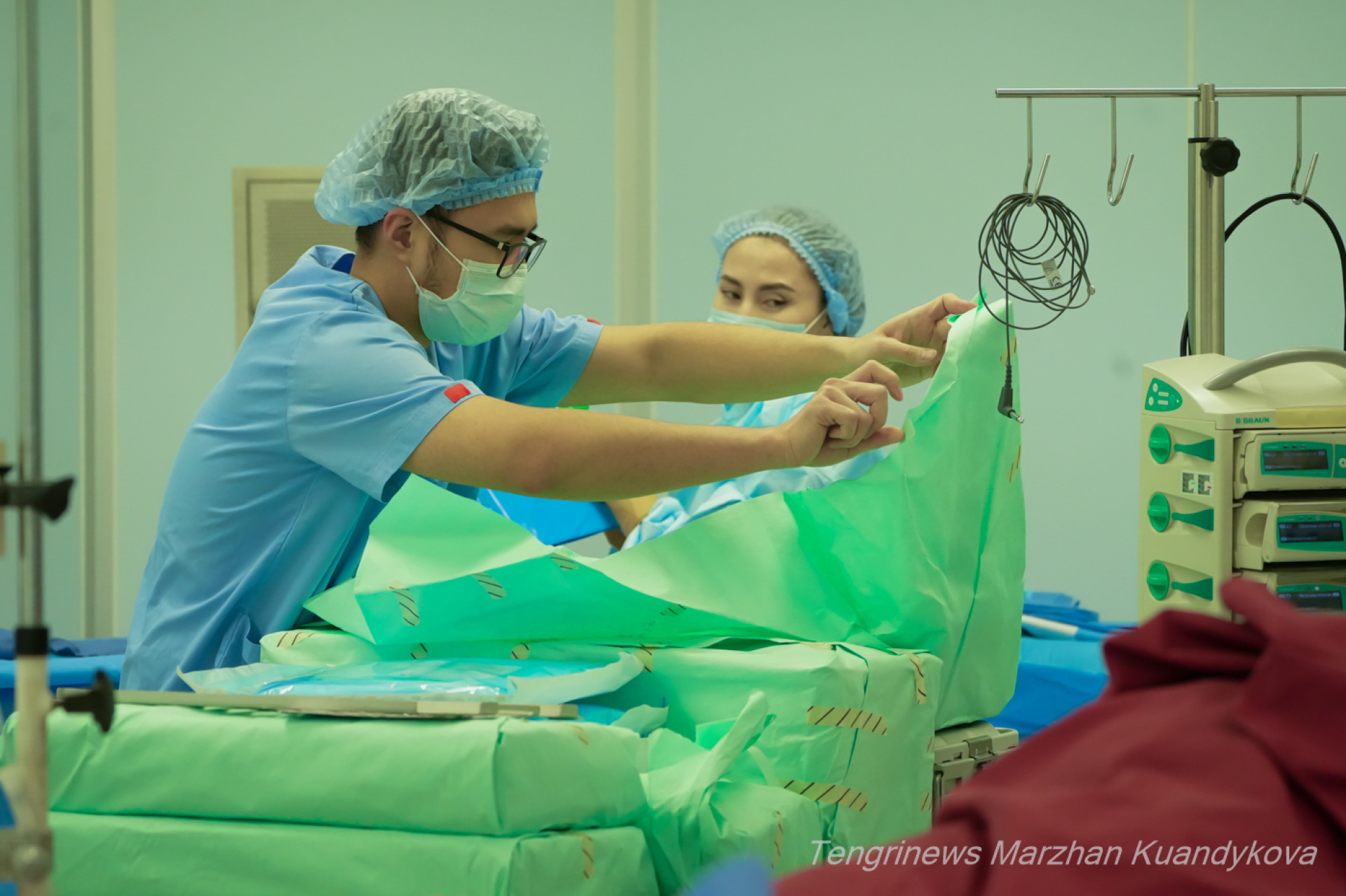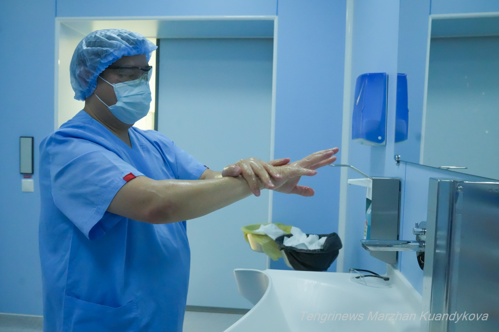 Перед тем как зайти в операционную, пришлось полностью сменить свою одежду на стерильный медицинский костюм, собрать волосы и тщательно продезинфицировать руки.