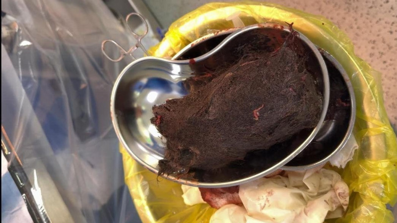 В ходе обследования специалисты обнаружили в полости желудка крупное инородное тело. Врачи приняли срочное решение о проведении хирургического вмешательства. В результате операции из желудка пациентки был извлечён волосяной комок весом 900 граммов.