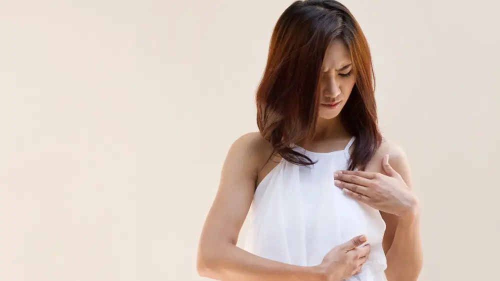 - втяжение, покраснение, появление изъязвлений, отека и других изменений на коже молочной железы;