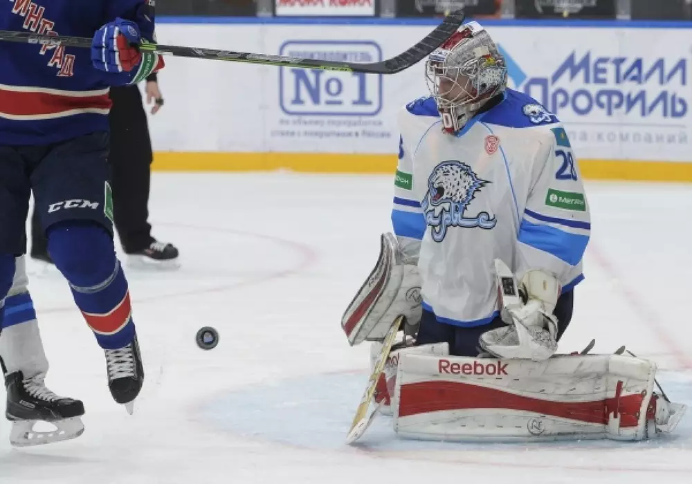 "Барыс" уступил лидеру КХЛ Вратарь "Барыса" Алексей Иванов в матче против СКА. © ria.ru