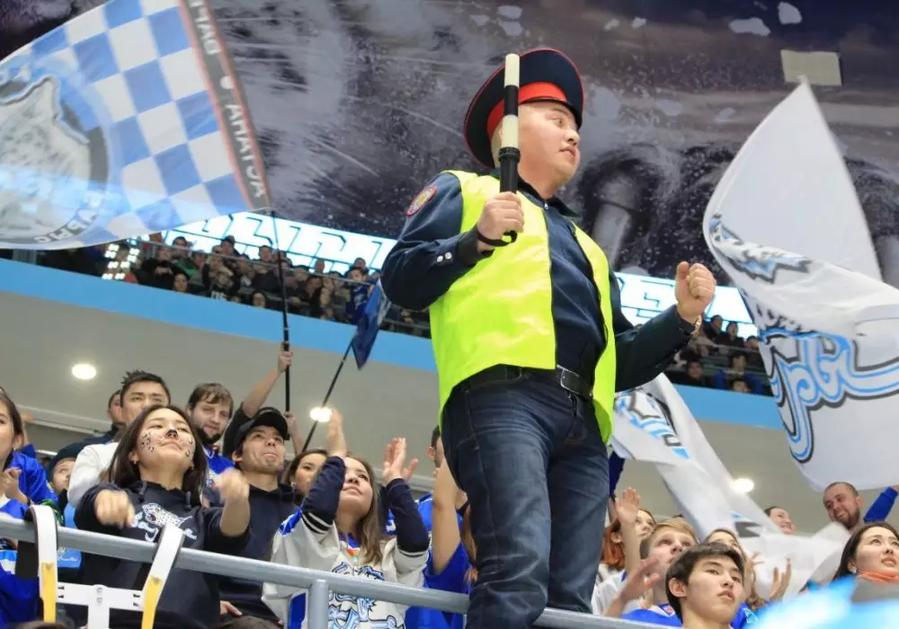 Болельщик в костюме дорожного полицейского стал одним из героев матча "Барыс" - "Автомобилист" (Екатеринбург), который состоялся на столичной ледовой арене вечером 5 января. Своими активными действиями фанат заводил зрителей на трибунах, сообщает спортивный портал Vesti.kz.