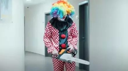Клоун с бензопилой напугал игроков "Барыса": появилось видео пранка Кадр с видео