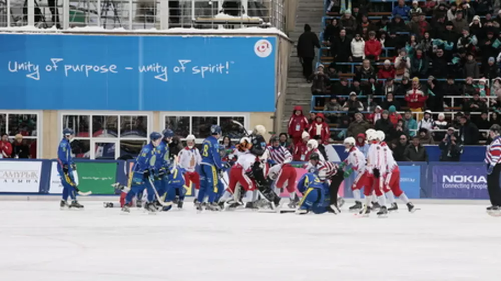 На высокогорном катке "Медеу" во время матча по хоккею с мячом подрались спортсмены из Казахстана и Монголии. Об этом сообщает корреспондент Tengrinews.kz. Инцидент произошел на 42 минуте первого тайма.
