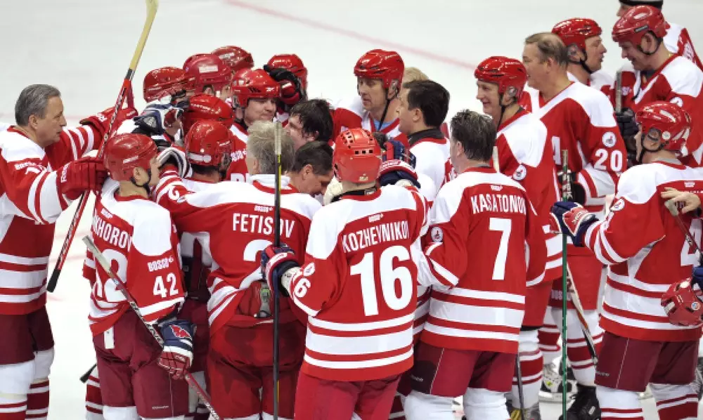 Хоккейный матч между ветеранскими сборными России и звезд мира завершился победой россиян, сообщает РИА Новости. Игра, проходившая в субботу в Москве на арене "Мегаспорт", закончилась со счетом 7:5. Матч был посвящен 40-летнему юбилею суперсерии игр 1972 года между сборными СССР и Канады. В составе российской команды отличились Павел Буре, Андрей Коваленко, Александр Харламов, Валерий Каменский и Вячеслав Фетисов. Причем Буре забил три шайбы. У гостей точные броски получились у Дэйва Макллвейна, Глена Андерсона, Рона Дюгея, Клиффа Роннинга и Грега Адамса. Знаменитый советский вратарь Владислав Третьяк (ныне президент Федерации хоккея России) играл на непривычной для себя позиции - в защите. Как сообщает "Росбалт" ворота россиян попеременно защищали Владимир Мышкин и Максим Михайловский. Тренерами сборной России были Виктор Тихонов, Владимир Юрзинов и Зинэтула Билялетдинов. Сборную звезд мира возглавлял канадец Фил Эспозито.