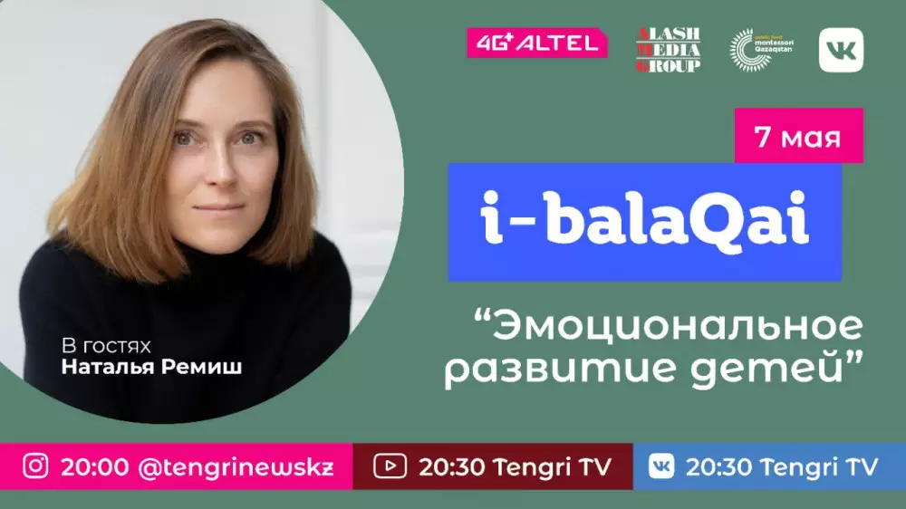 - Позже, в 20.30, писательница поговорит на тему "Эмоциональное развитие детей". Эфир будет проходить на двух площадках: на YouTube-канале Tengri TV, во "ВКонтакте" Tengrinews.kz.