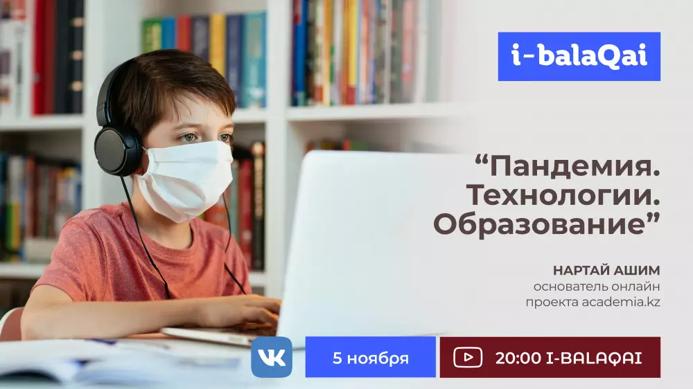 Смотрите сегодня, 5 ноября, в 20.00 на YouTube-канале I-BALAQAI. Гость эфира поговорит на тему: "Пандемия. Технологии. Образование". Также эксперт расскажет о работе платформы Bilimland.