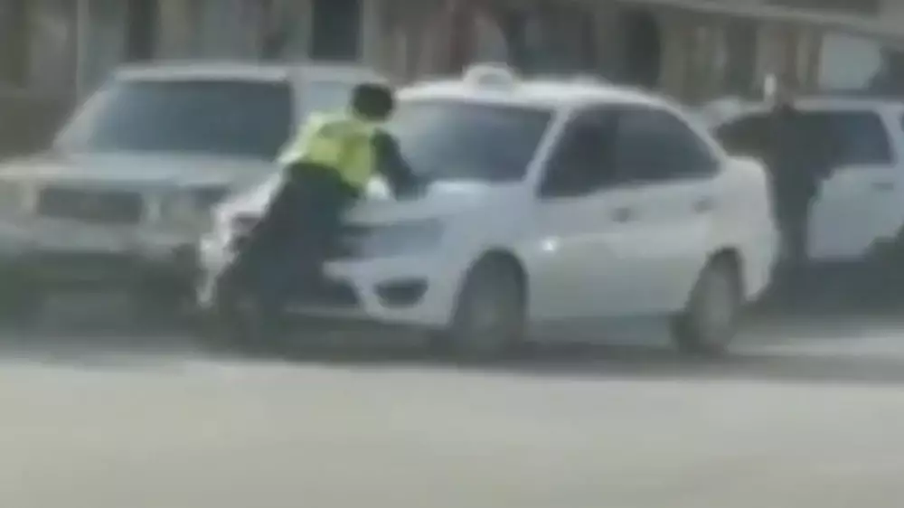Полицейского протащили на капоте авто в Кызылорде Кадр из видео