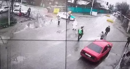Далее, продолжив движение, водитель совершил лобовое столкновение с припаркованной полицейской автомашиной марки Kia, затем наехал на Lada priora и Toyota Camry, что также были припаркованы рядом. Водитель служебного авто - полицейский Мереке Отаргазы с переломами обеих ног был экстренно госпитализирован.