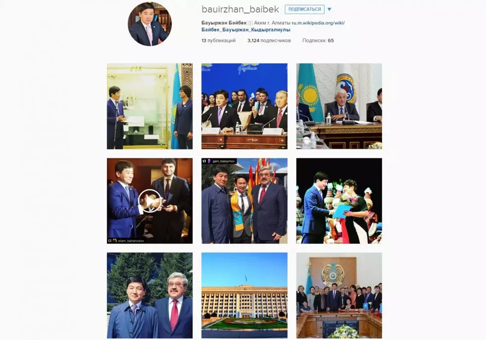 У пользователя на данный момент более трех тысяч подписчиков и загружено 13 фото. На снимках аким предстает с Президентом Казахстана, известными спортсменами и политиками. Подписи к снимкам, отметим, выдержаны в официальном стиле.