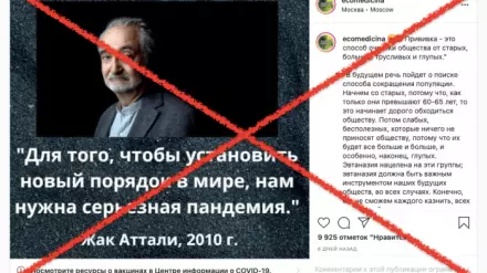 Желіде франциялық экономист, жазушы Жак Атталидің "пандемия халықты жаппай қыру үшін әдейі ұйымдастырылды" деген мәлімдемесі тарап жатыр. Оны қазақстандық шоу-бизнес өкілдері де жариялаған. Бірақ Жак Аттали мұндай мәлімдеме жасағаны өтірік болып шықты, - деп хабарлайды Tengrinews.kz тілшісі.