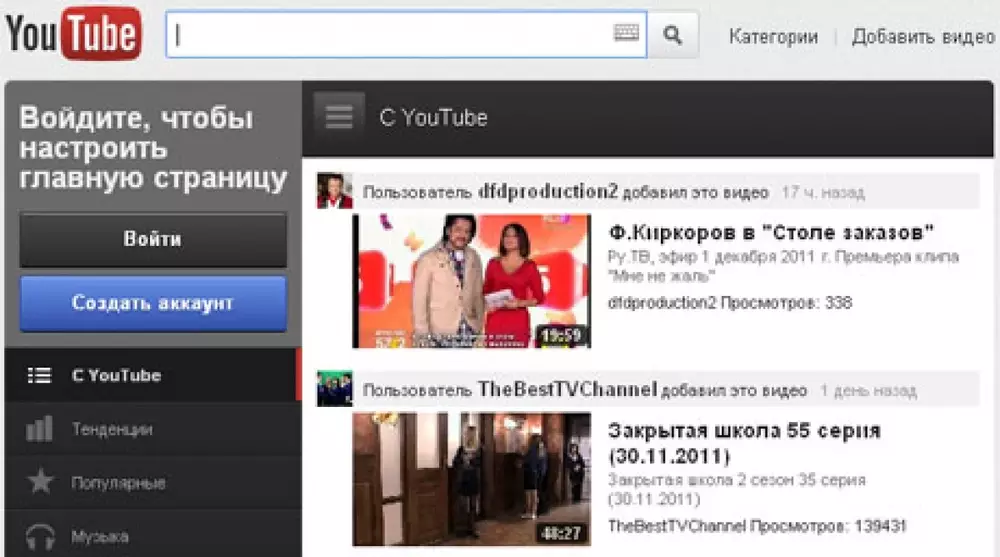 Видеохостинг YouTube обновил дизайн Скриншот главной страницы сайта youtube.com