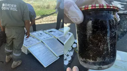 В Западно-Казахстанской области на автомобильном пункте пропуска "Сырым" обнаружены банки с черной икрой весом около 100 килограммов, передает Tengrinews.kz со ссылкой на пресс-службу Погранслужбы КНБ.