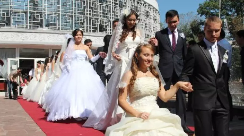 В этот день в Алматы брак зарегистрировали 210 пар. Второй по популярности стала дата 08.08.08 (8 августа 2008 года) - в этот день поженились 188 пар. Далее идет дата 09.09.09 (9 сентября 2009 года), когда свой брак зарегистрировали 109 пар. Наименее популярной оказалась дата 10.10.10 (10 октября 2010 года) - в тот день поженилась всего 41 пара. Хотя стоит отметить, что ранее в госорганах сообщалось о 131-й паре, сочетавшейся браком в этот день.