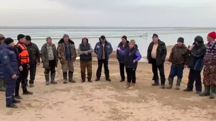 Прибывшие на место спасатели установили, что рыбаки находились на отколовшейся льдине в 30 метрах от берега.