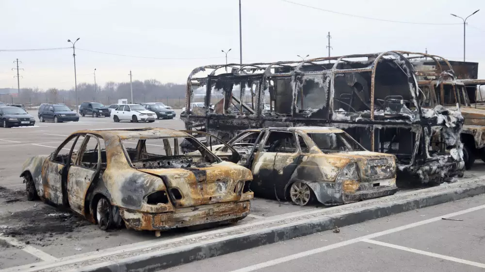 По данным начальника Службы спасения города Алматы Бейсегали Жунусова, сожжено 47 машин, обстреляно 48, еще 17 подверглись разбойным нападениям. Еще 40 авто принадлежат органам правопорядка, в том числе автозаки и грузовики.