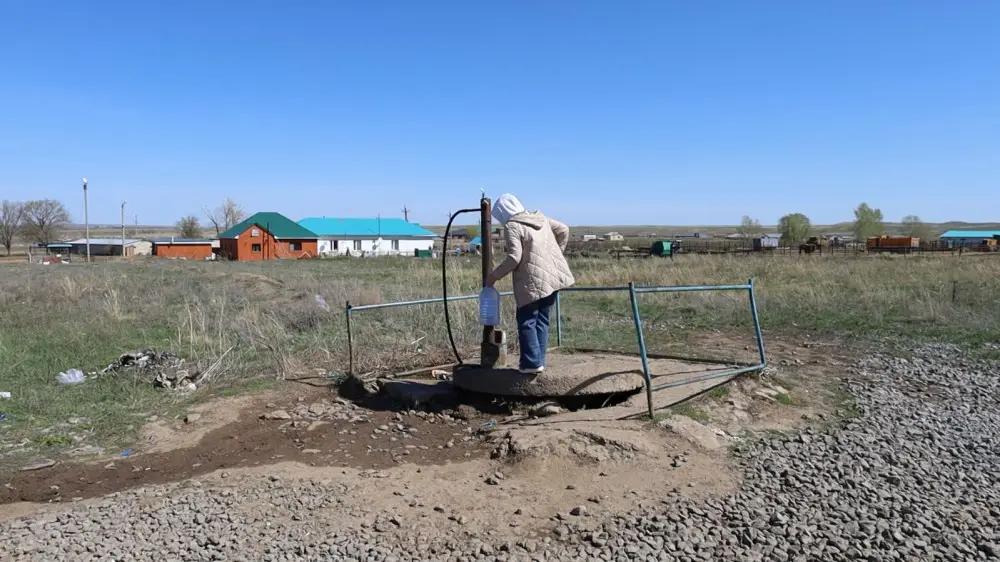 Люди проходят километры с вёдрами и канистрами до единственной колонки. Акимат уже четвертый год строит водопровод за 1,5 миллиарда тенге, но работы всё ещё не завершены.