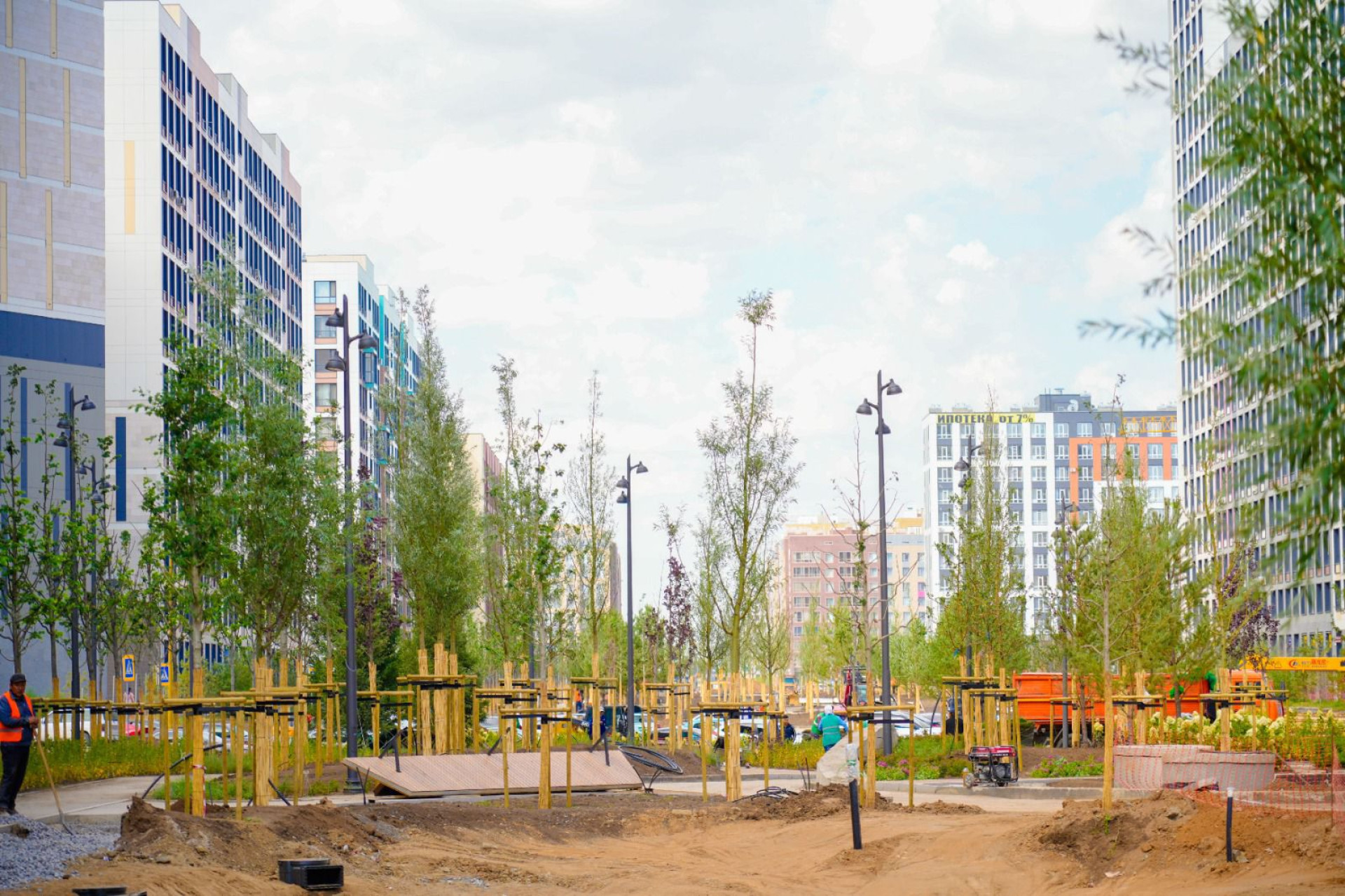 Также ведется работа по благоустройству паркового кластера вдоль реки Есиль. Завершено благоустройство набережной в парке Ататюрк, продолжается реконструкция набережной вдоль Триатлон парка.